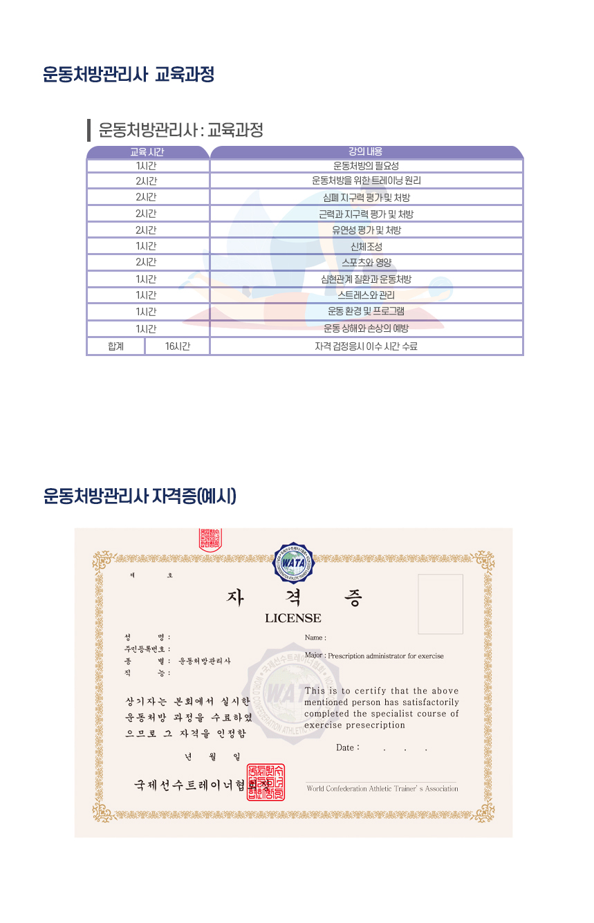 ´ÜÀϵî±Þ : ¿îµ¿Ã³¹æ°ü¸®»ç·Î½á ¿îµ¿¿¡ ´ëÇÑ Á¤È®ÇÑ ÀÌÇØ¿Í ¿îµ¿´É·Â, ¿îµ¿ ±â¼úÇâ»ó ÇÁ·Î±×·¥ ¿¬±¸ ¹× °³¹ß, ºÎ»ó¿¹¹æ ¹× ºÎ»ó°ü¸®¿¡ ¸Â´Â ¿îµ¿ÇÁ·Î±×·¥À» ÁöµµÇÒ ¼ö ÀÖ¾î¾ß ÇÑ´Ù.
