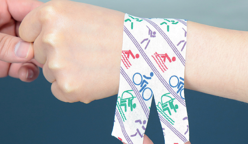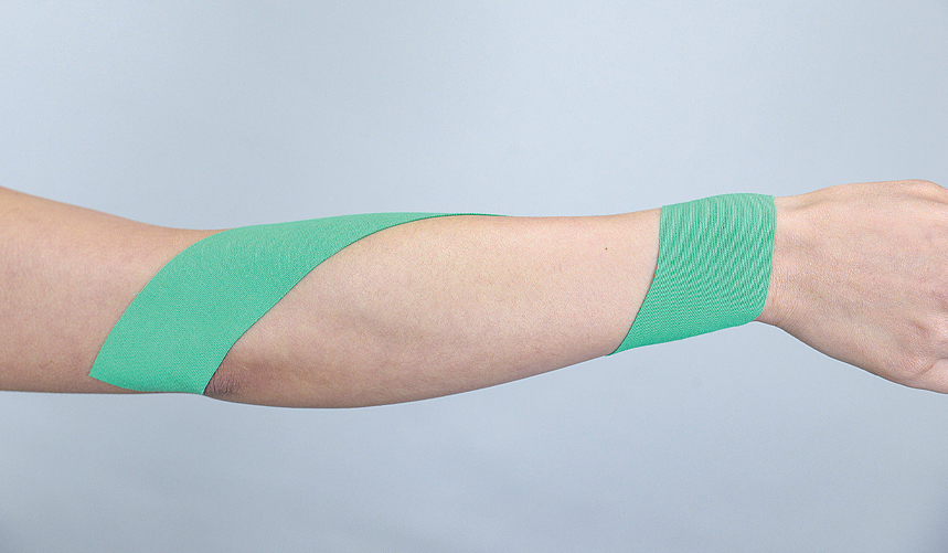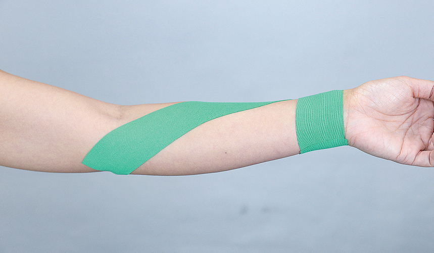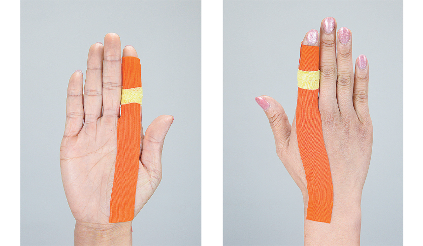 ÆÈÀ» Æì°í YÀÚÇü Å×ÀÌÇÁ¸¦ ÆÈ²ÞÄ¡ ³»Ãø(ÁÖ°üÀý) ¿ä°ñ Á¶¸é¿¡¼ ½ÃÀÛÇØ ÆÈÀÇ ¾ÕÂÊ ³»ÃøÀ» ÇâÇØ ºÙÀ̰í, ´Ù¸¥ YÀÚÇü Å×ÀÌÇÁ´Â ÆÈÀÇ ¾ÕÂÊ ¾î±ú ¹æÇâÀ¸·Î Å×ÀÌÇÎÇÑ´Ù.